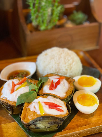 Soft, fluffy, and fragrant steamed rice cakes made with ripe toddy palm fruit. A classic yet lesser-known Thai dessert that captures the essence of Thai heritage. | 8.5