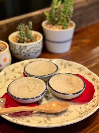 Chewy rice dumplings served in warm, creamy coconut milk with taro for its natural color and delicate fragrance. A warm, comforting dessert perfect for the winter. | 10